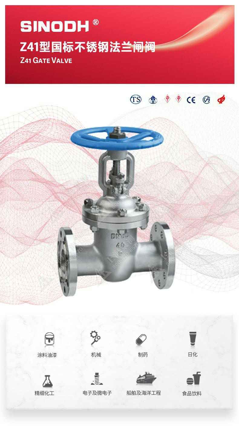 Z41型不锈钢闸阀,为开云·官方网站登录入口-开云(中国)自主研发生产。本产品是一种最常见的启闭阀,利用闸板的上下工作来接通(全开)和截断(全关)管道中的流体介质。此类闸阀广泛用于自来水、污水、建筑、石油、化工、食品、医药、轻纺、电力、船舶、冶金、能源系统等体管线上作为调节和截流装置使用。